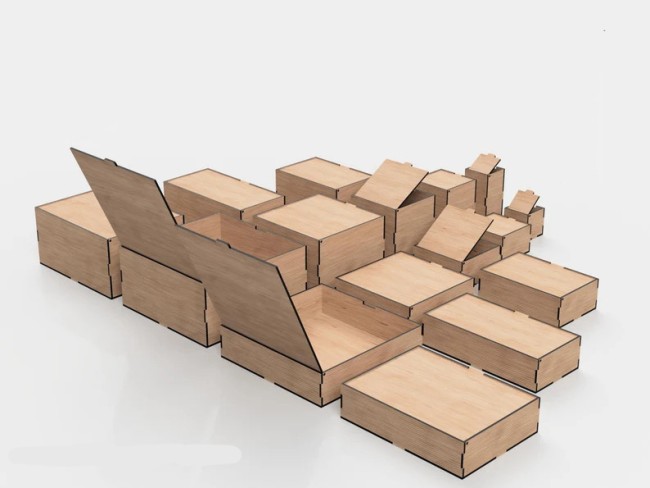 Les Boites de rangement sont fabriquées en bois contreplaqué de Pin de 3.6 mm.