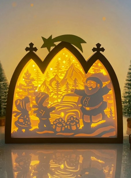 Boite à lumière - Crèche (Père Noël avec voiture)