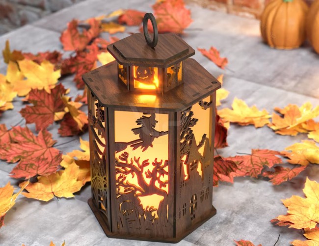La Lanterne d'Halloween est fabriquée en bois contreplaqué de Pin de 3.6 mm.