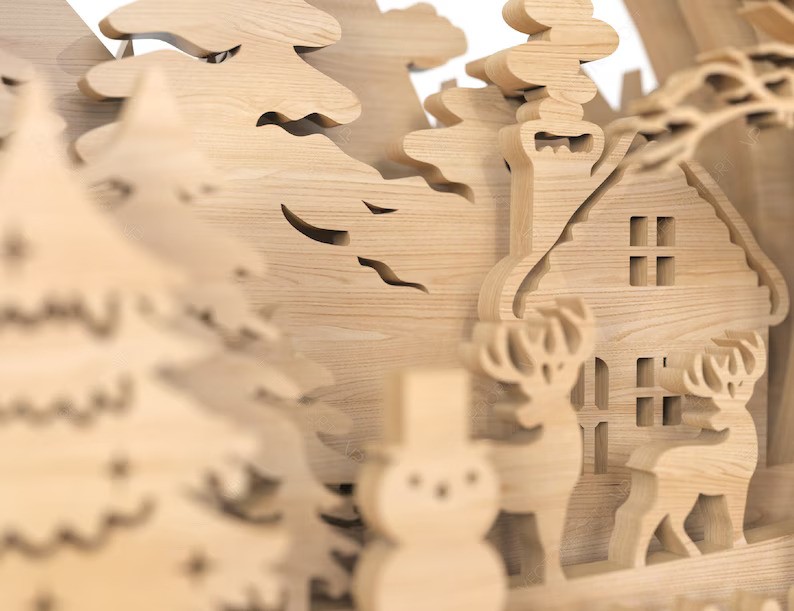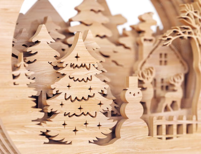 La boule de Noël est fabriquée en bois contreplaqué de Pin de 3.6 mm.