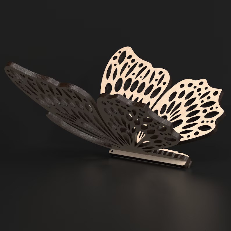 Les Papillons sont fabriqués en bois contreplaqué de Pin de 3.6 mm.