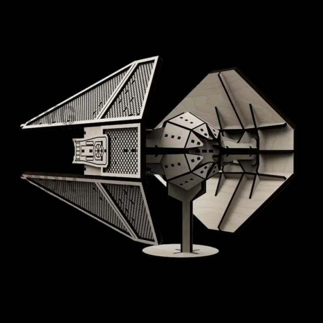 L'Intercepteur TIE est fabriquée en bois contreplaqué de Pin de 3.6 mm.