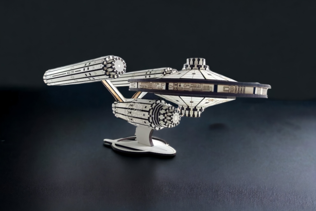 L'USS Enterprise est fabriquée en bois contreplaqué de Pin de 3.6 mm.