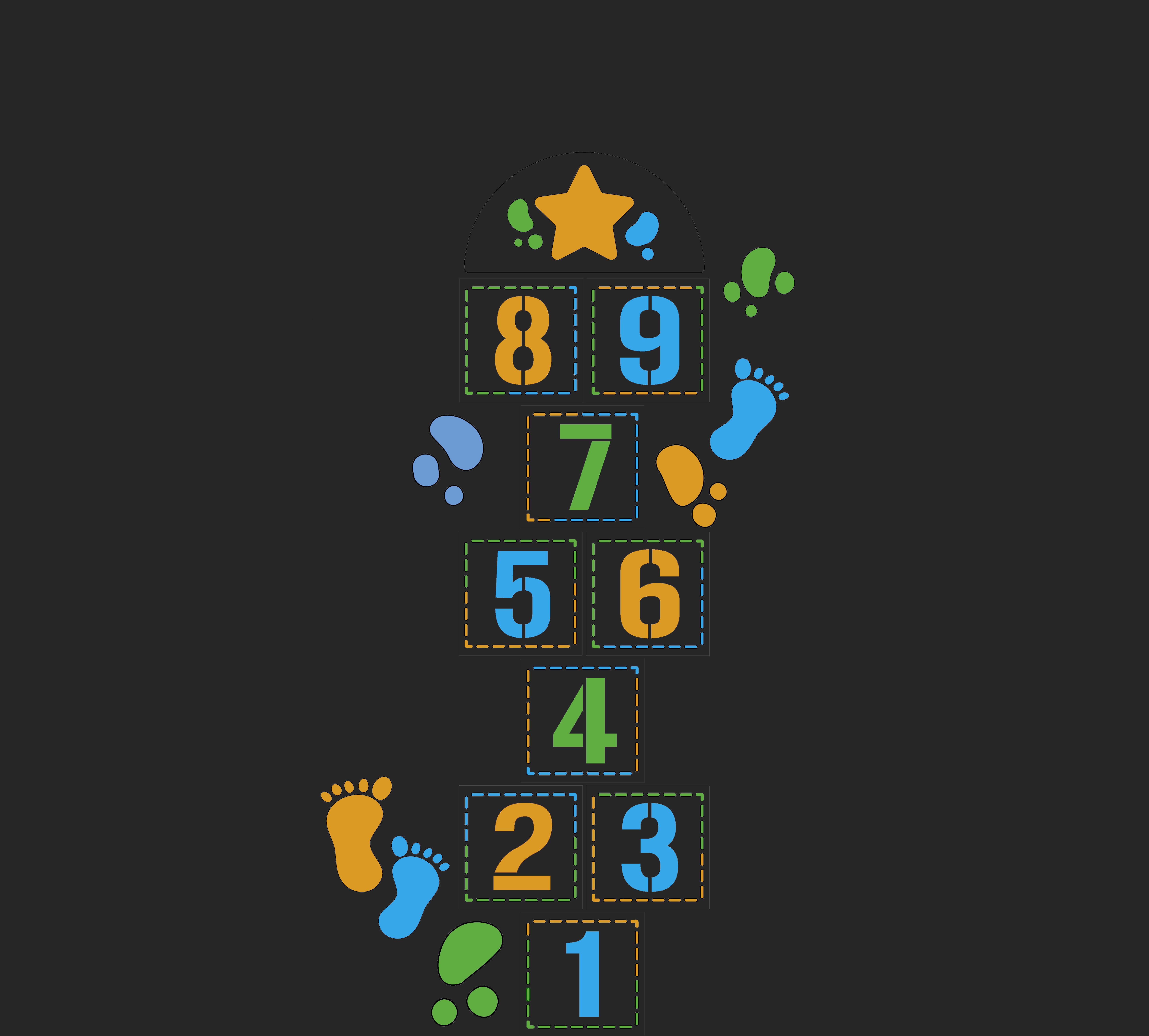 Pochoirs - Marelle - Idéal pour une cour d'école - Polycarbonate 0.5 mm
