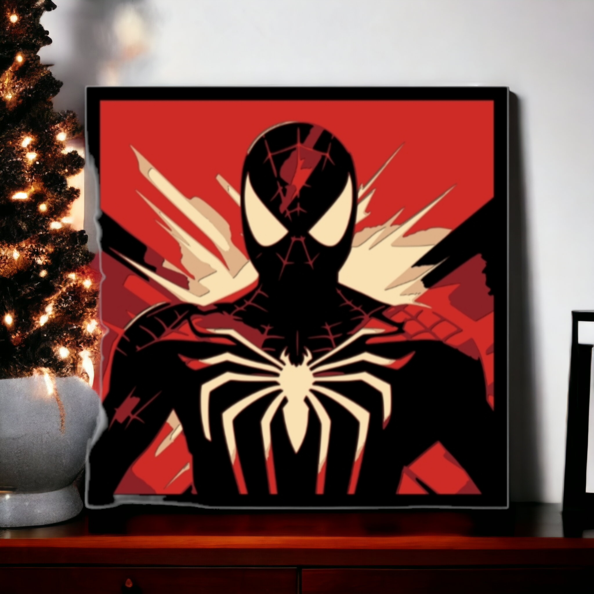 Le tableau de Spider-Man est fabriqué en bois contreplaqué de 5 mm.
