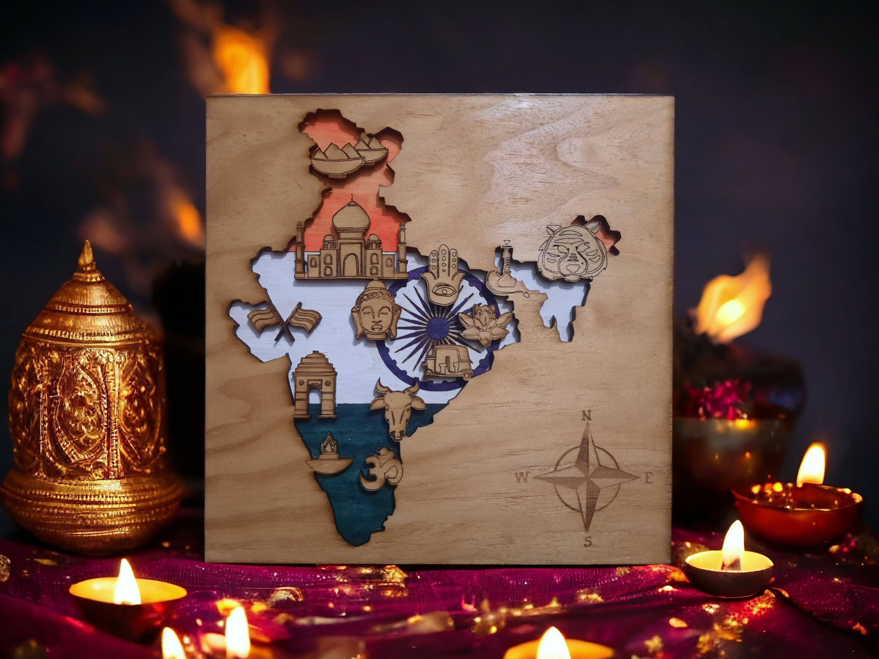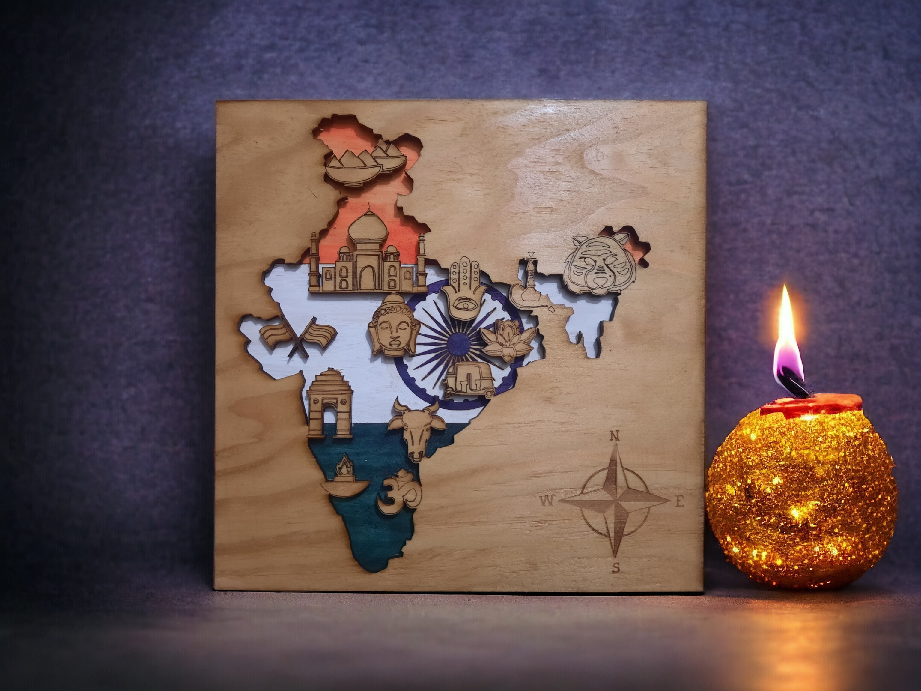 La Carte de l'Inde est fabriquée en bois contreplaqué de 5 mm.