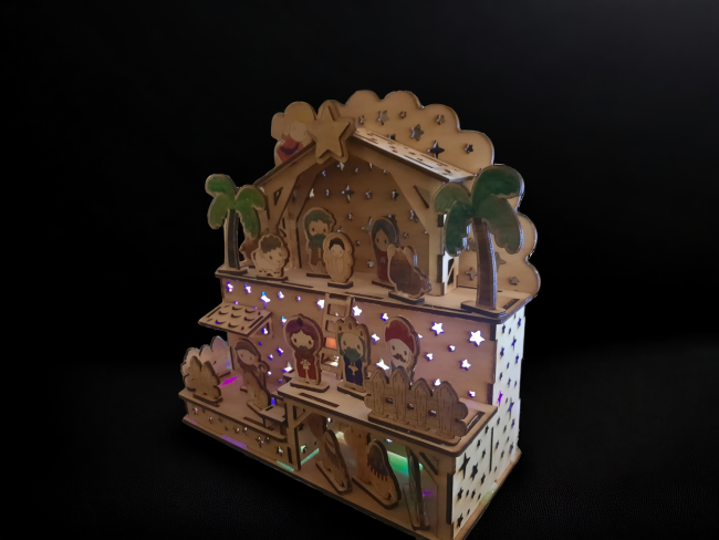 La Crèche de Noël est fabriquée en bois contreplaqué de 5 mm.